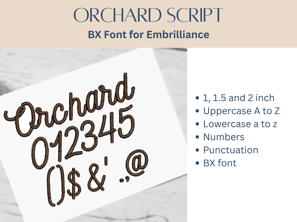 Orchard Script BX font for Embrilliance Software - 1", 1.5" and 2"